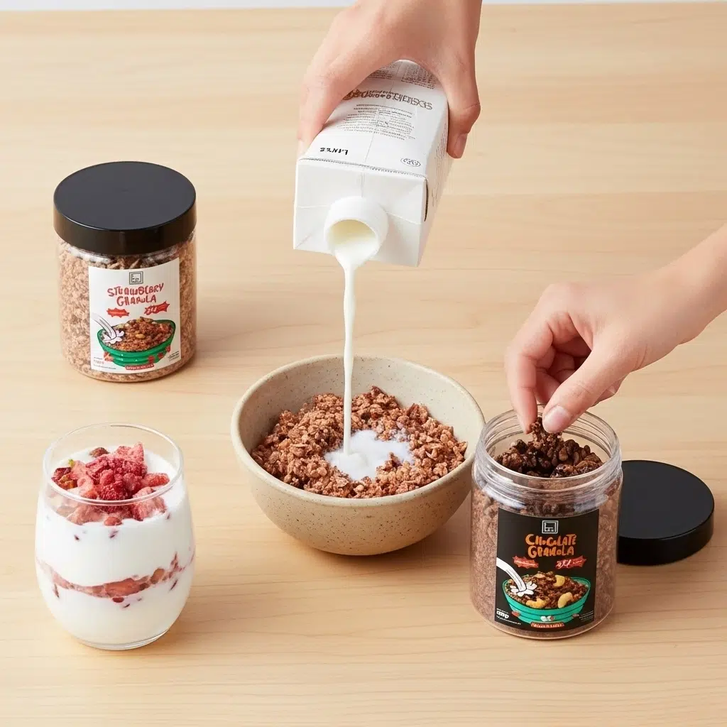 Tergantung selera! Bisa dimakan langsung sebagai snack, dicampur susu/yogurt sebagai sereal, atau dijadikan topping untuk smoothie bowl kamu.
